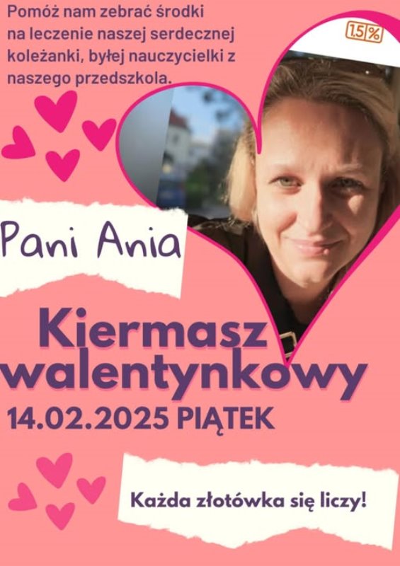 Dnia 14 lutego w naszej placówce odbędzie się kiermasz ciast, z którego wszystkie zebrane pieniądze zostaną przekazane na rzecz leczenia Pani Ani.