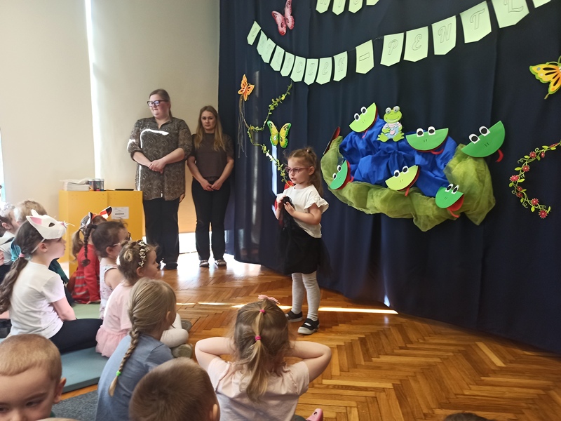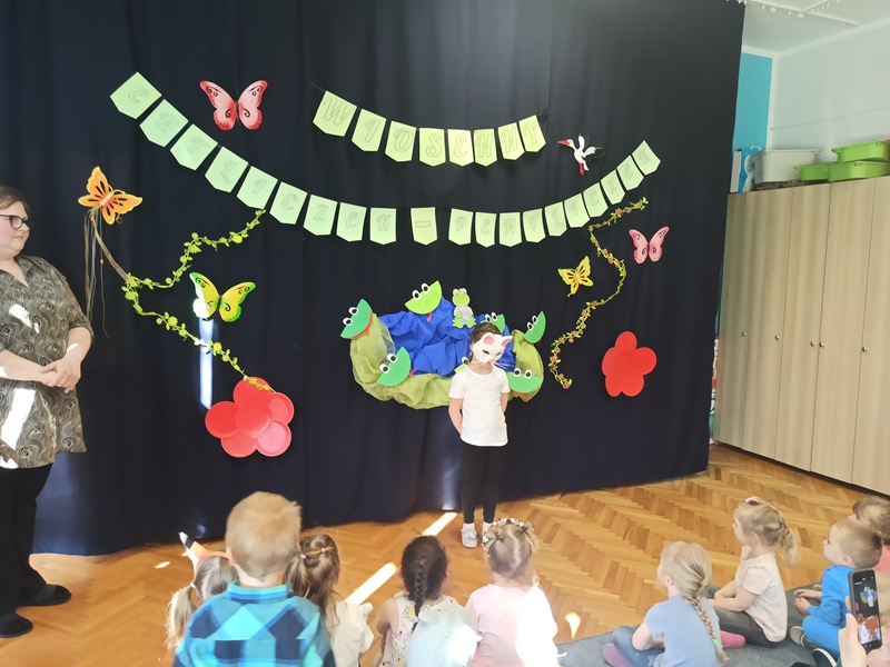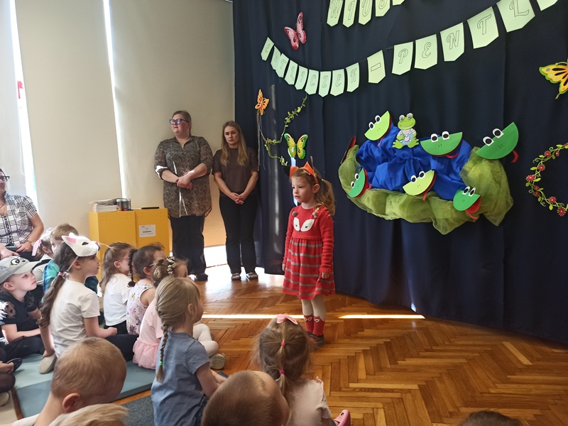 W naszym przedszkolu odbyło się spotkanie recytatorskie „Wiosenny Entliczek – Pentliczek”. Dzieci z zaangażowaniem  zaprezentowały  wiersze znanych poetów dla dzieci. Mali artyści zachwycili publiczność swoją odwagą, doskonałą pamięcią oraz piękną interpretacją utworów. Było to wyjątkowe wydarzenie, pełne radości i prawdziwie wiosennej atmosfery, które pozwoliło zanurzyć się w świecie poezji.